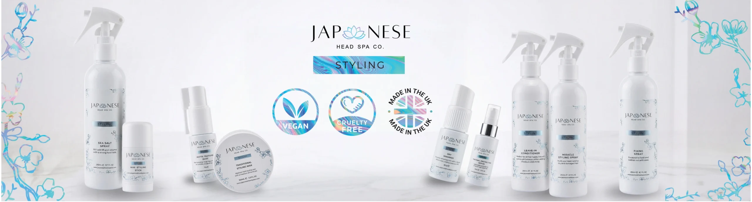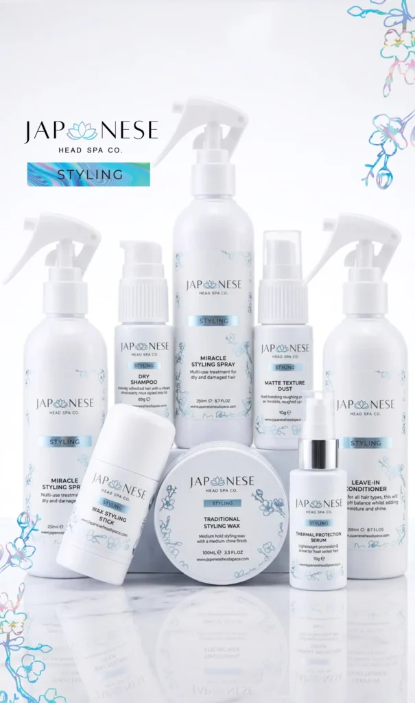 The Japanese Head Spa Co. Styling Range is a complete collection of professional hair styling products, designed to deliver salon-quality results at home. Formulated with premium ingredients and inspired by Japanese hair care traditions, each product addresses a specific styling need — from medium hold and heat protection to texture, volume, and hydration — ensuring every hair type is beautifully catered for.